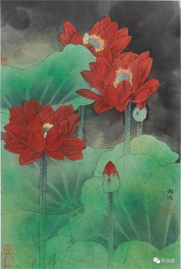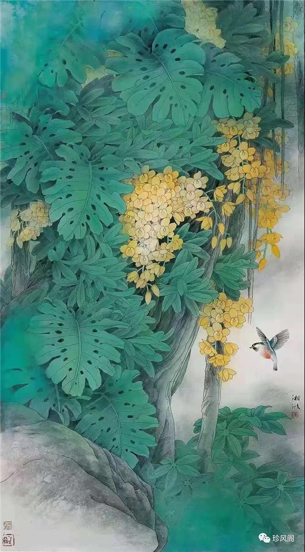 總的來看,陳湘波先生的工筆花鳥畫,繼承了嶺南畫派重生活、重色彩、重創(chuàng)造的優(yōu)秀傳統(tǒng),創(chuàng)作出來的是一系列意境深邃幽遠的作品。他在繼承傳統(tǒng)的基礎上,借鑒現(xiàn)代設計、西方繪畫的元素以及其他畫種的繪畫技法,形成了符合現(xiàn)代人審美的具有個人風格的當代工筆花鳥作品。