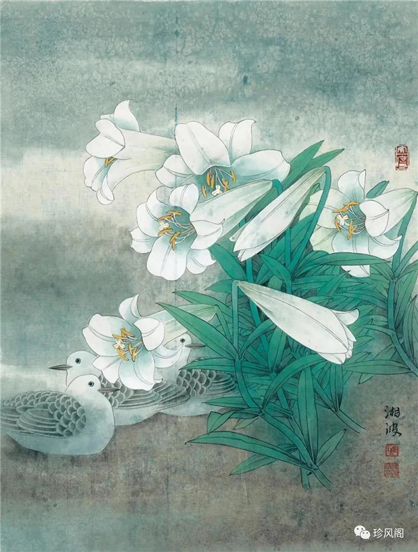 陳湘波先生的工筆花鳥畫,延伸著中國畫的本體方式,筆墨細密嚴整,設色淡雅空靈,以其深厚的造型基礎與超凡的色彩感受,形成了樸素、清澈、柔和、自然的個人畫風。在具體創(chuàng)作中,他的作品既浸染出畫家的個性追求,又體現(xiàn)出強烈時代特點的新面貌。