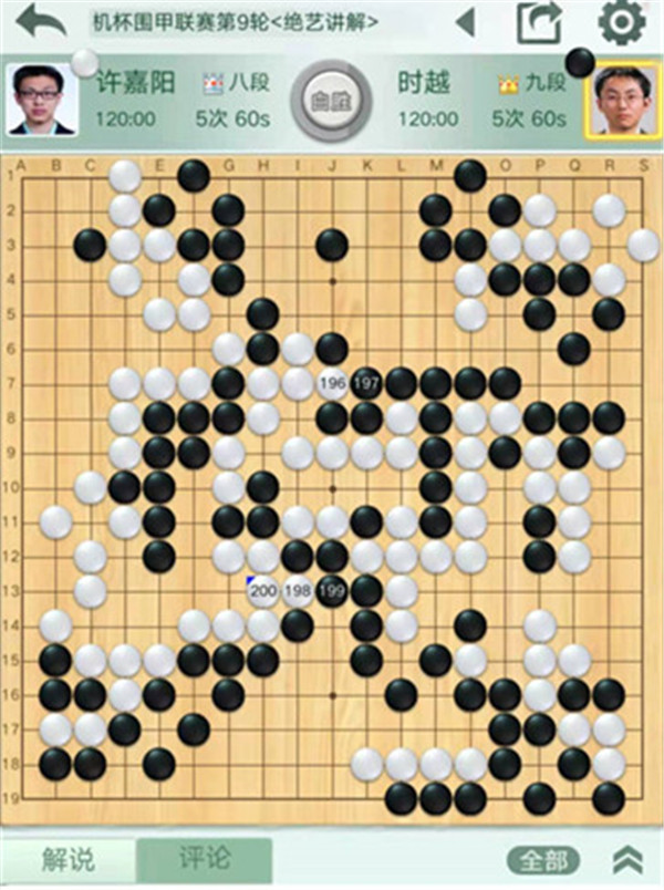一臺石豫來執(zhí)白對陣彭立堯。開局白棋不錯,進(jìn)入中盤白棋大局不足,被黑在中央雙方消長處連續(xù)行棋,局面被動。官子時(shí)白棋也失誤多多,最終黑棋大勝。