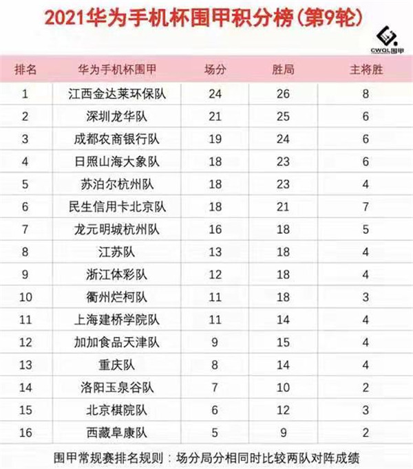 2021華為手機(jī)杯中國圍棋甲級聯(lián)賽常規(guī)賽第九輪江西金達(dá)萊環(huán)保隊(duì)3:1深圳龍華隊(duì)