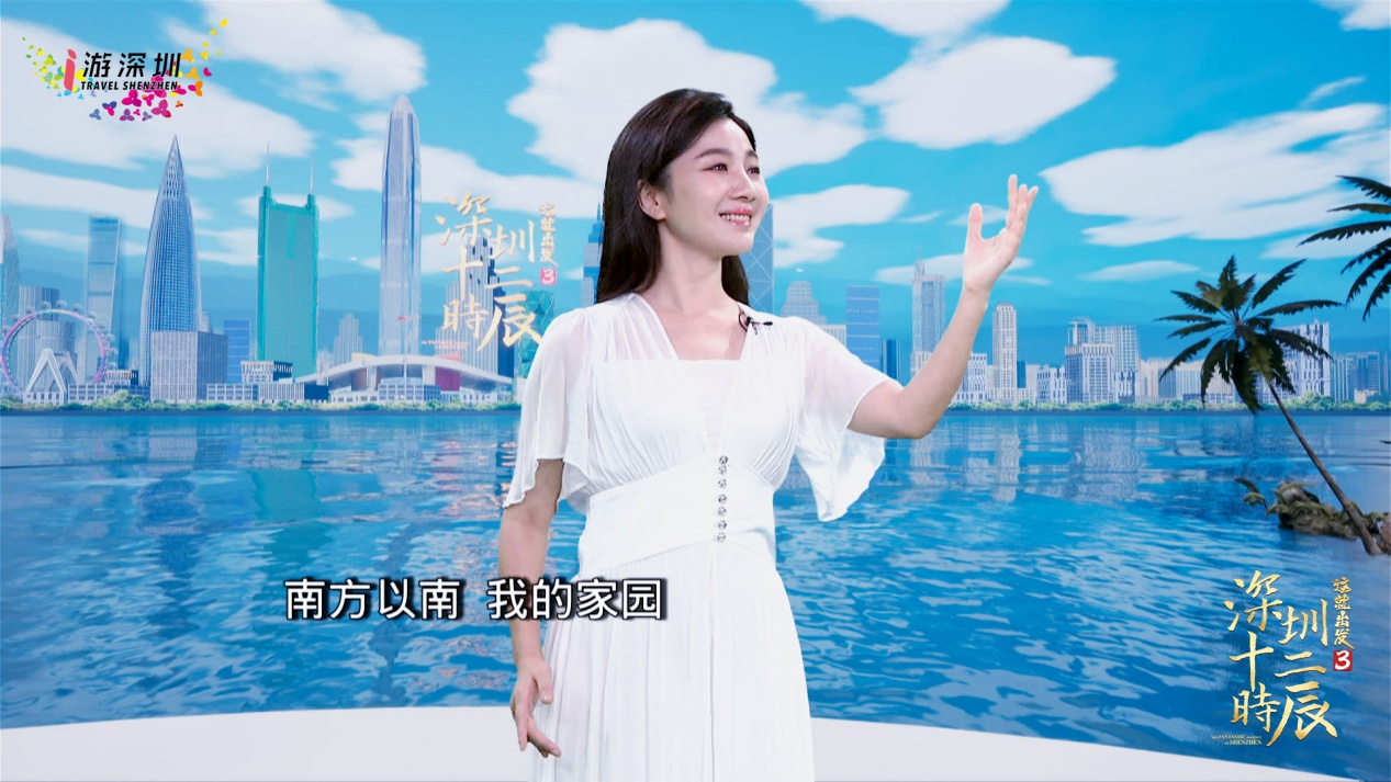 深圳歌劇舞劇院副院長(zhǎng)、國(guó)家一級(jí)演員李晨晨在虛擬演播室翩翩起舞,深圳市音樂(lè)家協(xié)會(huì)副主席、國(guó)家一級(jí)演員楊樂(lè)現(xiàn)場(chǎng)獻(xiàn)唱??萍寂c藝術(shù)交融,為深圳旅游蓬勃發(fā)展獻(xiàn)上美好的祝愿。