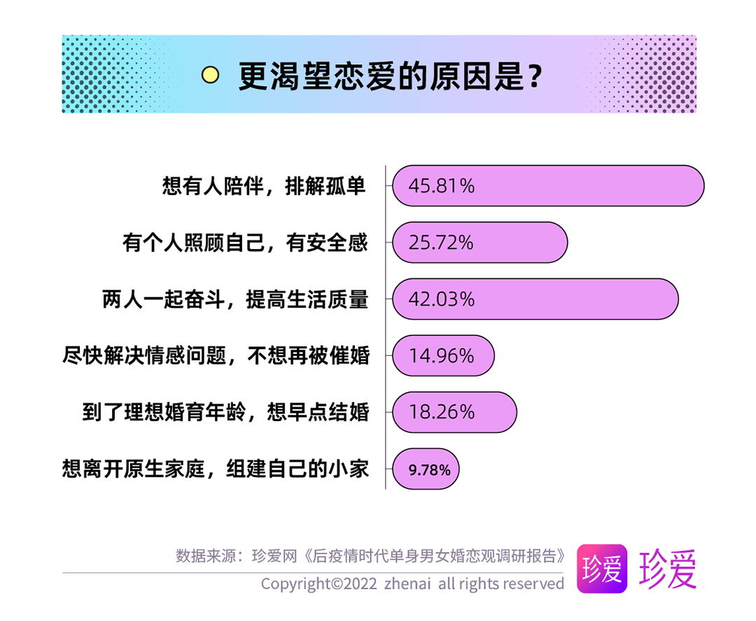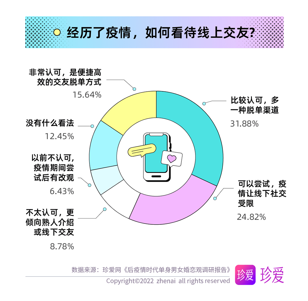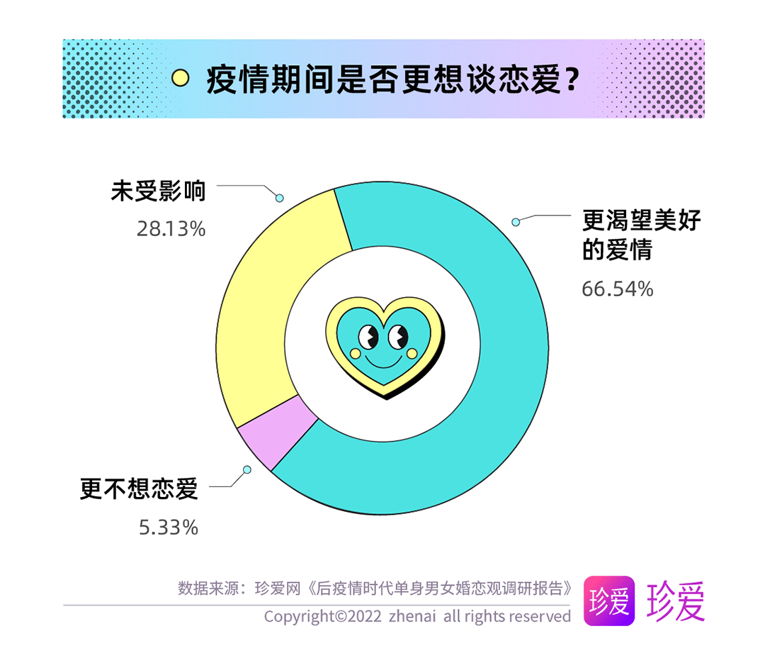 讀特客戶端·深圳新聞網(wǎng)2022年6月14日訊(記者 葉梅)疫情讓人們的生活狀態(tài)、工作方式和個(gè)人習(xí)慣都發(fā)生了顯著變化,而對單身人群而言,疫情三年他們對感情的態(tài)度又有哪些改變?現(xiàn)在的他們?nèi)绾慰创H密關(guān)系?珍愛網(wǎng)聚焦后疫情時(shí)代單身人群的婚戀觀發(fā)起調(diào)研,探究疫情期間單身人群在戀愛期待、擇偶標(biāo)準(zhǔn)、脫單難度等方面的變化。本次調(diào)研共回收問卷9862份。