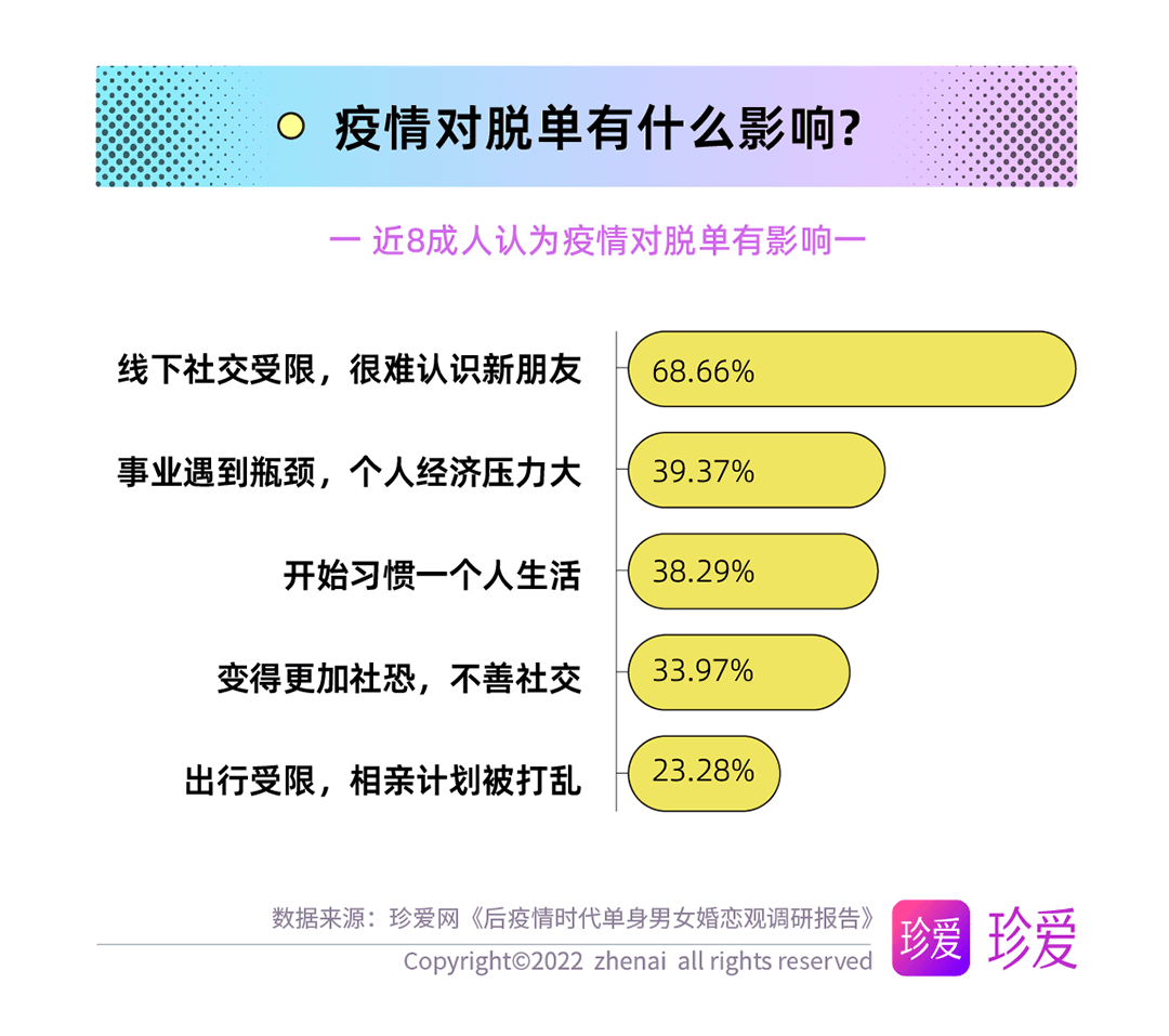 約八成人脫單進(jìn)程受到一定影響,超七成人使用婚戀社交軟件