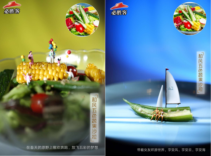 在深圳,必勝客更是腦洞大開,在最新的2018春季菜單,用迷你人偶結(jié)合旅游的場(chǎng)景進(jìn)行創(chuàng)意拍攝。天馬行空的想象,獨(dú)特的視角,妙趣橫生,讓人領(lǐng)略美妙“風(fēng)景”的同時(shí),不禁食指大動(dòng)。