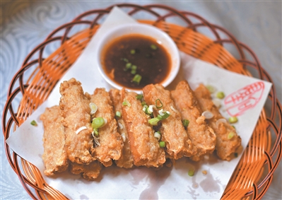 醉瓊樓最早以東江菜打天下,東江炸腐卷、客家醬釀蛋角、蘿卜丸等都是傳統(tǒng)的客家菜肴。小小的蘿卜丸,眾人追著吃。華哥的蘿卜丸里加了自家曬的臘味和鮮肉;炸腐卷用3分鯪魚肉、7分豬肉為餡,用腐皮裹起,切了再炸。少東家年少時最愛吃這一口,常常扒完飯,才舍得吃它。后來,華哥接手以后,加入了新派粵菜元素。海鱸起片走油,配上撈過的西蘭花,新鮮滑香,深得街坊喜愛;炸咕嚕肉,干爽得就像剛洗過澡的白白豬,絕不油膩。原來,秘訣在于半肥瘦的豬肉事先要燉煮過,去掉了油分,只留其香不留肥膩。
