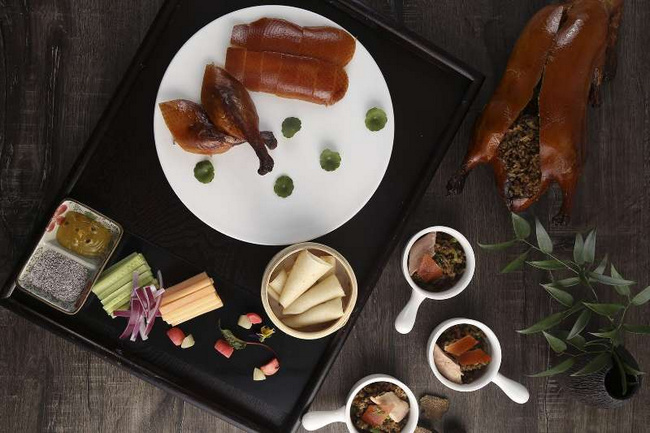 北京烤鴨距今已經有大約180年的歷史了。梧桐PLUS的烤鴨,展現(xiàn)出的是完全不一樣的時髦魅力。