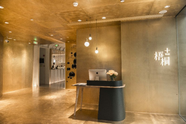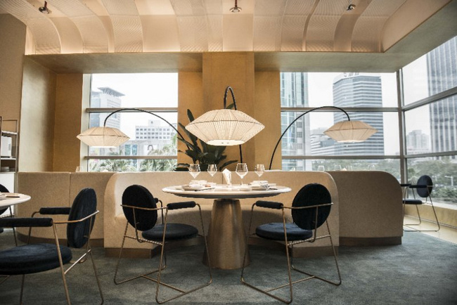以黑色和金色為主色調的梧桐PLUS,選用流動的線條對餐廳空間進行分割。桌與桌之間的距離保證了食客對話的私密性和安全性。即使沒有預定到包廂,也不用擔心旁邊食客的閑聊會影響到彼此。