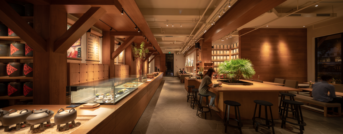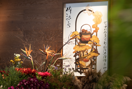 “一個(gè)溫暖的會(huì)客廳”是tea’stone對(duì)所構(gòu)建的茶空間的定義,也是他們對(duì)其所提倡的茶美學(xué)生活的表達(dá)之一。tea’stone團(tuán)隊(duì)有著深厚的空間美學(xué)造詣,在傳統(tǒng)的基礎(chǔ)上做減法,沉浸式的開放空間,選取東方美學(xué)的核心因素,以傳統(tǒng)梁柱,斗拱和椽檁,勾勒出當(dāng)代簡(jiǎn)約的茶空間,呈現(xiàn)出精制溫暖的格調(diào),家私、櫥窗、花藝凡見種種,皆散發(fā)著和諧雅致的美感。簡(jiǎn)潔,現(xiàn)代,精致,溫暖,再結(jié)合“一人一席”的飲茶方式,讓喝茶這件事完整靈動(dòng),并且稱得上具有美感的生活方式。難怪能看到越來越多的人們抱著筆記本坐在tea’stone里面獨(dú)處、辦公、會(huì)友?,F(xiàn)代中國人的“第三空間”從此又有了新的選擇。
