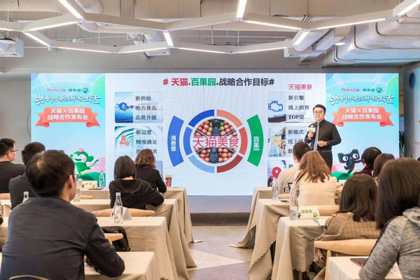見圳客戶端·深圳新聞網(wǎng)2019年11月30日訊 11月29日,天貓與百果園在深圳阿里中心舉行戰(zhàn)略合作發(fā)布會(huì),天貓大食品總經(jīng)理無齡、大食品果蔬冰運(yùn)營負(fù)責(zé)人思豪,百果園集團(tuán)副總裁焦岳、電商負(fù)責(zé)人孫鵬出席會(huì)議并發(fā)表演講。本次發(fā)布會(huì)以“共創(chuàng)水果生鮮好生活”為主題,雙方計(jì)劃通過優(yōu)勢互補(bǔ)和資源整合,從水果到生鮮進(jìn)行全面深入的戰(zhàn)略合作。