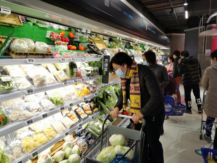 大年初五,盒馬鮮生門店