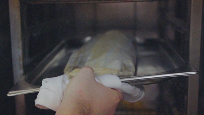 清蒸鱸魚(yú)是常見(jiàn)的粵式吃法,本期,四季酒店主廚畢柏克為吃貨們帶來(lái)別樣的鱸魚(yú)吃法——“烤紙包鱸魚(yú)”。他將魚(yú)進(jìn)行腌制后,用烘焙用紙裹緊,在烤爐中烤制40分鐘。吸收了海鮮文蛤、白葡萄酒精華的魚(yú)肉緊實(shí)鮮嫩,在打開(kāi)外包紙的那一刻,香氣四溢,讓人欲罷不能。如此烹法,也能最大限度保存魚(yú)的營(yíng)養(yǎng)和鮮美。