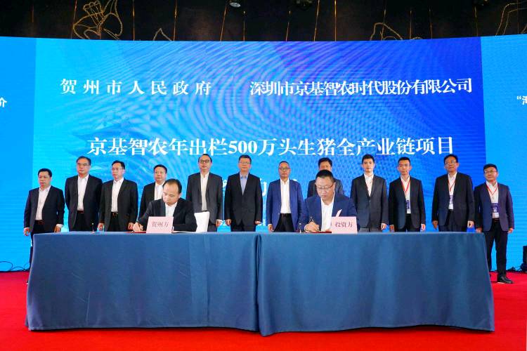 見圳客戶端·深圳新聞網(wǎng)2020年5月25日訊 2020年5月22日,廣西東融先行示范區(qū)(賀州)建設(shè)發(fā)展若干政策新聞發(fā)布會暨“灣企入桂”賀州項目推介會在深圳舉行。推介會上,深圳市京基智農(nóng)時代股份有限公司 (以下簡稱“京基智農(nóng)”)與廣西賀州市人民政府簽署《京基智農(nóng)賀州市年出欄500萬頭生豬全產(chǎn)業(yè)鏈項目合作框架協(xié)議》,這意味著京基智農(nóng)生豬產(chǎn)業(yè)布局劍指千萬頭規(guī)模,現(xiàn)代農(nóng)業(yè)板塊駛?cè)氚l(fā)展的快車道。