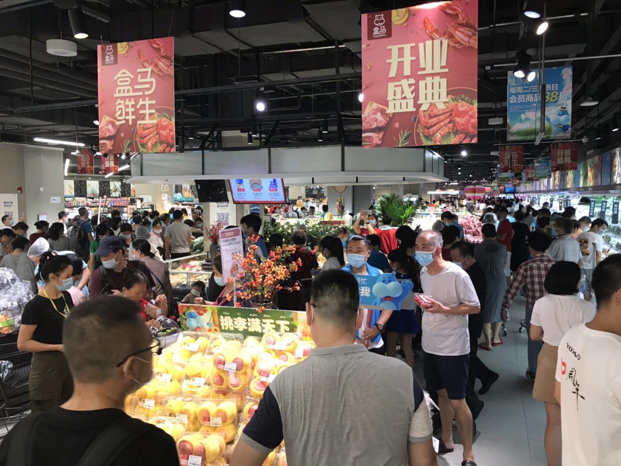 近年來,隨著深圳發(fā)展重心北拓、深圳特區(qū)一體化進程加快,即便是在傳統(tǒng)意義上的深圳關(guān)外,在盒馬紅山店的配送范圍內(nèi),已經(jīng)有一家沃爾瑪、兩家華潤萬家等大賣場,還有十幾家錢大媽和一個農(nóng)貿(mào)批發(fā)市場,各類線下零售和社區(qū)買菜業(yè)態(tài)也在該區(qū)域快速發(fā)展。