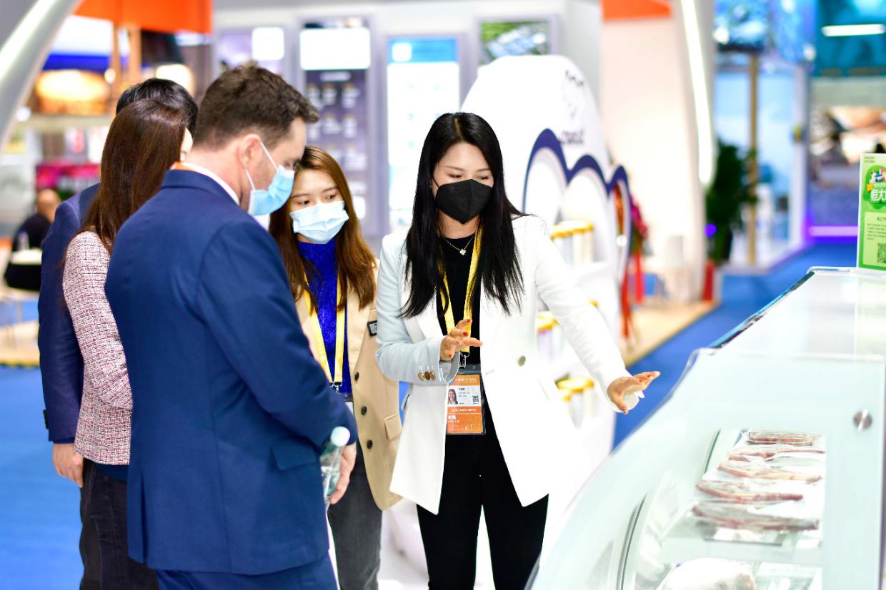 開館第一天,恒大農(nóng)牧展臺就吸引了眾多“訪客”。除了明星產(chǎn)品PRM牛羊肉和咔哇熊奶粉依舊被“圍觀”之外,來自世界各原產(chǎn)地的優(yōu)質(zhì)進口食品也備受關注,如陌上金蓮泰國茉莉香米、西班牙特級初榨橄欖油、烏克蘭葵花籽油、新西蘭黑金鮑魚、大西洋海參、法國紅酒等高品質(zhì)進口食品,吸引了眾多國內(nèi)外采購商陸續(xù)前來交流洽談。