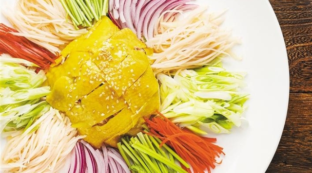 深圳君悅酒店的主席樓一道“風生水起撈葵花雞”,不但寓意十足而且鮮味濃郁。
