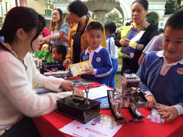 活動(dòng)現(xiàn)場,不少市民的目光被愛匯百變教育科技有限公司的EV3編程機(jī)器人所吸引。EV3編程機(jī)器人高爾夫、EV3編程機(jī)器人幸運(yùn)大轉(zhuǎn)盤、EV3編程機(jī)器人障礙大闖關(guān)、電磁感應(yīng)千人震等系列體驗(yàn)活動(dòng)新奇好玩,讓市民近距離了解機(jī)器人圖形化編程原理,收獲了LEGO仿真機(jī)械結(jié)構(gòu)及圖形化編程、電動(dòng)發(fā)電、電磁感應(yīng)、電路等科普知識(shí)。
