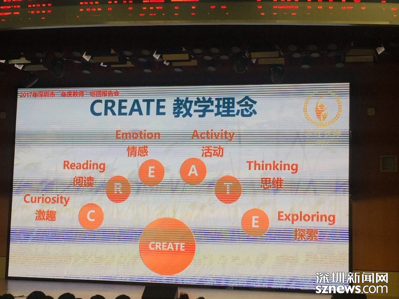 我有幸聽(tīng)了一場(chǎng)深圳市年度教師的巡回演講,其中一個(gè)老師講到自己的幸福成長(zhǎng)過(guò)程時(shí),展示了自己獨(dú)有的特色教學(xué)理念——CREATE教學(xué)理念,如圖,她的所有課堂充現(xiàn)了激趣、閱讀、情感、活動(dòng)、思維和探索等六大環(huán)節(jié),彰顯特色,成就精英,當(dāng)你達(dá)到如此境界時(shí),幸福感和成就感就會(huì)水到渠成,雖然不求人人成精英,但愿人人有特色。