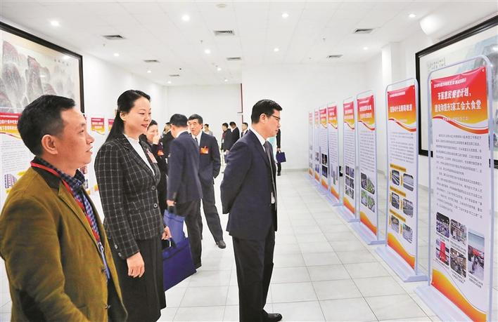 ▲福田區(qū)人大代表觀看展板,了解民生實(shí)事辦理情況。