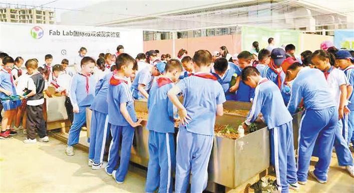 8年來,隨著生態(tài)體驗校本課程不斷升級改造,教學(xué)樓中庭不僅有水稻田,還開發(fā)了蔬果園、野果園、生態(tài)池等體驗空間。每個樓層的走廊上種上了百香果、金銀花等植物,教學(xué)樓的樓頂上也被開發(fā)利用,所種植瓜果蔬菜、花木、中草藥等植物品類達(dá)100多種,建成了一片面積達(dá)8000平方米的學(xué)生體驗式實(shí)踐基地,這為孩子們提供了得天獨(dú)厚的體驗學(xué)習(xí)空間,使他們能夠親歷種植過程,認(rèn)知生命的成長規(guī)律,也使得基地四季都能夠服務(wù)于教育教學(xué)。