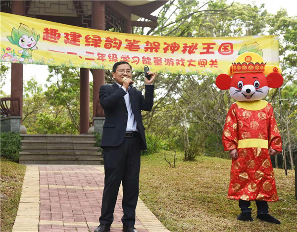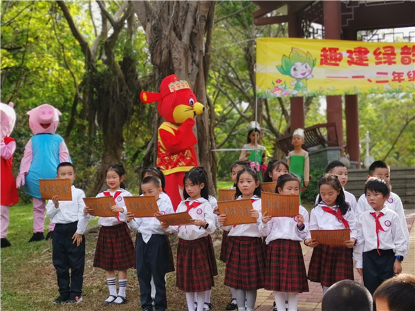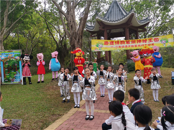 在鳥語相伴下,深圳市學(xué)生文聯(lián)秘書長謝晨的講話拉開本次活動的序幕,他贊揚了華新小學(xué)學(xué)生們學(xué)業(yè)上的優(yōu)秀表現(xiàn),肯定本次活動寓教于自然的教學(xué)方式,也表達了多次參加華新小學(xué)的活動的喜悅之情。隨后,每個年級各準(zhǔn)備了兩個節(jié)目為現(xiàn)場帶來歡樂的氣氛,“綠韻筆架?趣建我的學(xué)習(xí)能量王國”活動正式開始,學(xué)生們紛紛往自己年級的活動區(qū)域飛奔而去。