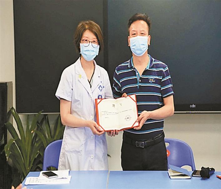 新沙小學(xué)校長給孫虹醫(yī)生頒發(fā)健康副校長聘書。