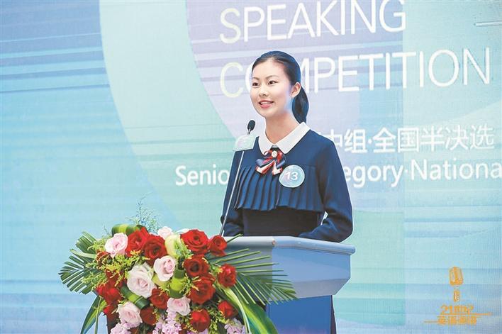 深外外語(yǔ)書(shū)院學(xué)生王心怡參加21世紀(jì)杯英語(yǔ)演講比賽全國(guó)總決賽。