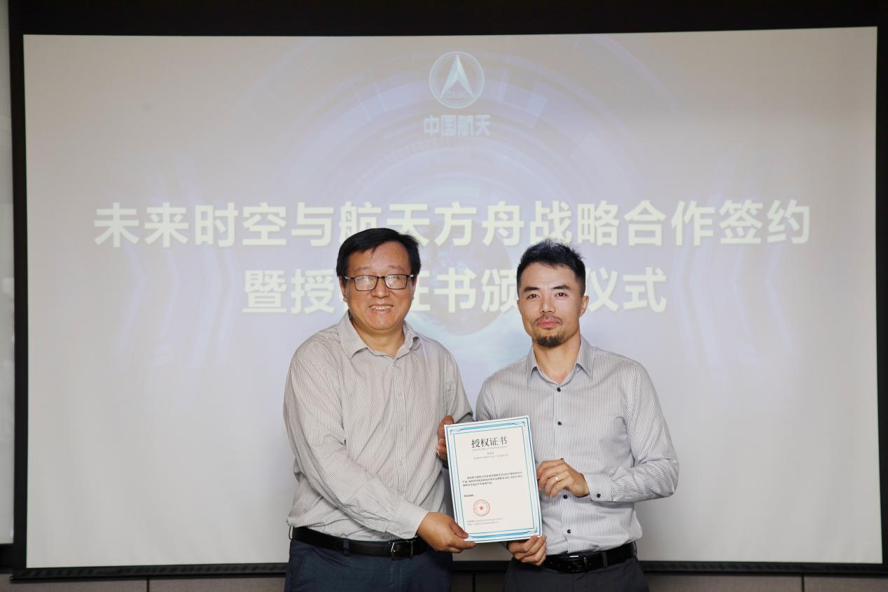 見(jiàn)圳客戶端·深圳新聞網(wǎng)2021年5月31日訊 (記者 陳彬)為深入推進(jìn)航天科技文化技術(shù)在社會(huì)生活、人民健康、科普教育、素質(zhì)教育和文化產(chǎn)業(yè)等領(lǐng)域的成果轉(zhuǎn)化和廣泛應(yīng)用,在中國(guó)航天系統(tǒng)科學(xué)與工程研究院有關(guān)領(lǐng)導(dǎo)的關(guān)心幫助下,未來(lái)時(shí)空(深圳)文化產(chǎn)業(yè)有限公司和北京航天方舟空間技術(shù)有限公司就航天文創(chuàng)產(chǎn)品開(kāi)發(fā)、航天康養(yǎng)項(xiàng)目建設(shè)、航天科普教育及商業(yè)化航天器應(yīng)用等方面達(dá)成了全面合作,于5月28日上午在北京簽署戰(zhàn)略合作協(xié)議并頒發(fā)授權(quán)證書。