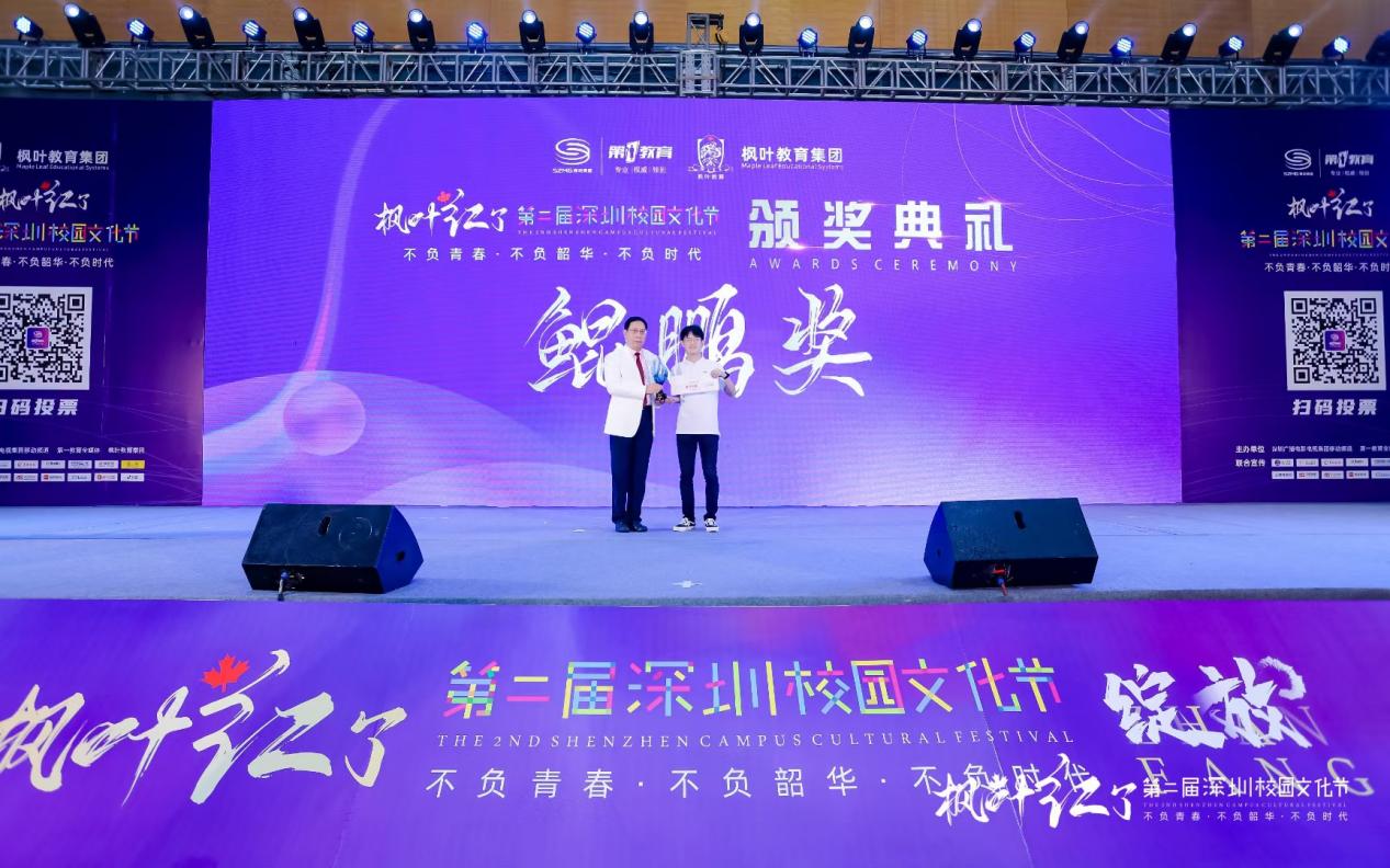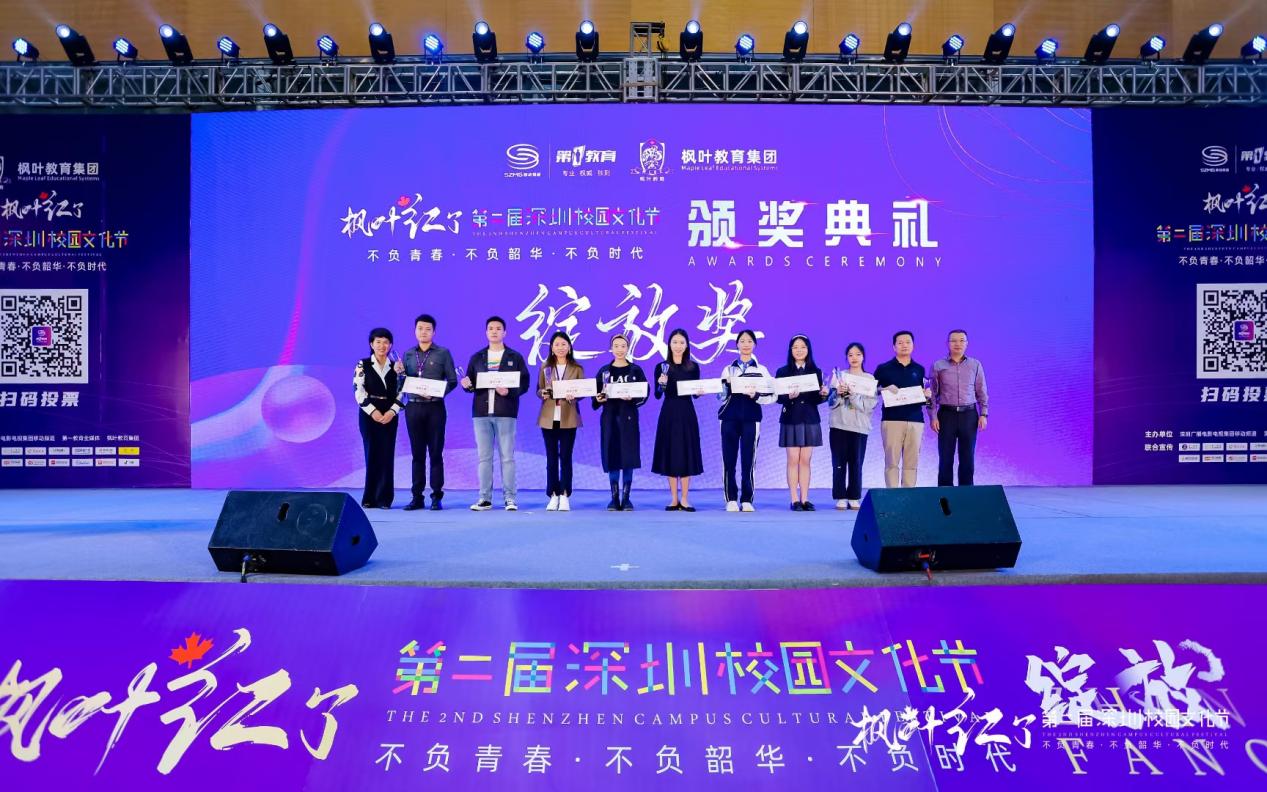 另?yè)?jù)了解,本屆活動(dòng)不以競(jìng)賽為目的,不設(shè)專(zhuān)業(yè)評(píng)委,不設(shè)專(zhuān)業(yè)分?jǐn)?shù),不設(shè)獎(jiǎng)牌等級(jí),而是以鼓勵(lì)學(xué)生全面發(fā)展、校園文化交流為初心,由觀(guān)眾們自發(fā)投票評(píng)選出魅力社團(tuán)獎(jiǎng)、優(yōu)秀指導(dǎo)老師獎(jiǎng)、鯤鵬獎(jiǎng)、綻放獎(jiǎng)、最具人氣獎(jiǎng)。記者從現(xiàn)場(chǎng)了解到,獲得本屆魅力社團(tuán)獎(jiǎng)的學(xué)校有10所,分別是:深圳市南山區(qū)文理實(shí)驗(yàn)學(xué)校(集團(tuán))《模擬聯(lián)合國(guó)社》、南山區(qū)前海學(xué)?!栋羟蜿?duì)》、深圳實(shí)驗(yàn)學(xué)校高中部《回聲合唱團(tuán)》、深圳高級(jí)中學(xué)(集團(tuán))中心校區(qū)《深高學(xué)生戲劇團(tuán)》、深圳市楓葉學(xué)校《英語(yǔ)戲劇社》、深圳市龍華中學(xué)《跆拳道空手》、深圳市蛇口育才教育(集團(tuán))育才中學(xué) 《404樂(lè)隊(duì)》、深圳市育新學(xué)校 《The best軍樂(lè)團(tuán)》、南方科技大學(xué)附屬中學(xué)《機(jī)器人隊(duì)》、深圳市藝術(shù)高中《鐘呂交響管樂(lè)團(tuán)》;獲得本屆校園文化節(jié)鯤鵬獎(jiǎng)(唯一)的學(xué)校是:南方科技大學(xué)附屬中學(xué);獲得本屆校園文化節(jié)綻放獎(jiǎng)的是9所學(xué)校,分別是:深圳市第一職業(yè)技術(shù)學(xué)校、深圳中學(xué)、深圳市藝術(shù)高中、深圳市寶安中學(xué)(集團(tuán))、深圳市第三職業(yè)技術(shù)學(xué)校、深圳市楓葉學(xué)校、深圳市龍崗區(qū)龍城高級(jí)中學(xué)、寶安區(qū)為明雙語(yǔ)實(shí)驗(yàn)學(xué)校、深圳市蛇口育才教育(集團(tuán))育才中學(xué);獲得現(xiàn)場(chǎng)最具人氣獎(jiǎng)的學(xué)校有10所,分別是:深圳市第一職業(yè)技術(shù)學(xué)校、深圳市福田區(qū)華強(qiáng)職業(yè)技術(shù)學(xué)校、深圳市第三職業(yè)技術(shù)學(xué)校、深圳大學(xué)附屬中學(xué)、紅嶺中學(xué)(集團(tuán))石廈初中部、龍崗區(qū)蘭著學(xué)校、萬(wàn)科梅沙書(shū)院、深圳市南山區(qū)文理實(shí)驗(yàn)學(xué)校(集團(tuán))、筍崗中學(xué)、寶安中學(xué)(集團(tuán));最后同時(shí)獲得本屆校園文化節(jié)優(yōu)秀指導(dǎo)老師獎(jiǎng)的學(xué)校分別來(lái)自:南方科技大學(xué)附屬中學(xué)、深圳市第一職業(yè)技術(shù)學(xué)校、深圳中學(xué)、深圳市蛇口育才教育(集團(tuán))育才中學(xué)、深圳市寶安中學(xué)(集團(tuán))、深圳市第三職業(yè)技術(shù)學(xué)校、深圳市藝術(shù)高中、深圳市楓葉學(xué)校、寶安區(qū)為明雙語(yǔ)實(shí)驗(yàn)學(xué)校、深圳市龍崗區(qū)龍城高級(jí)中學(xué)。