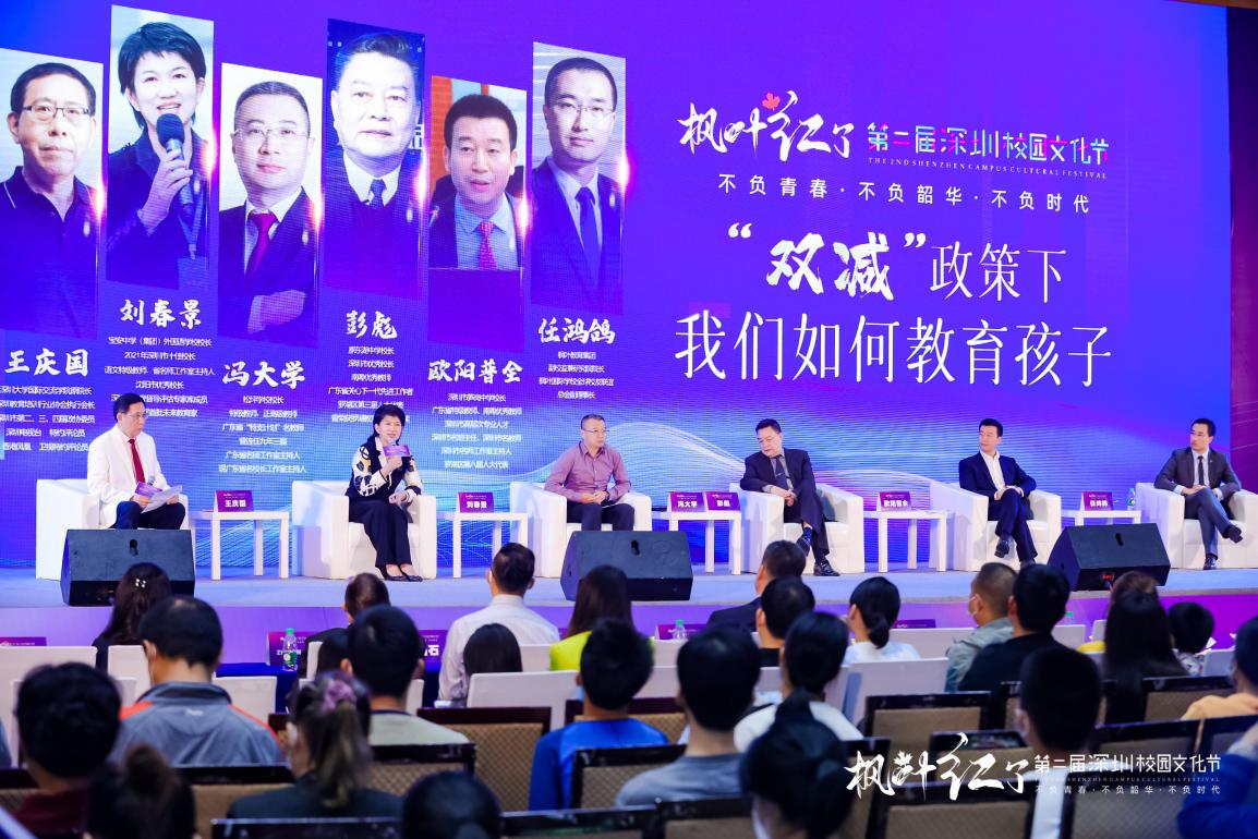 下午,現(xiàn)場(chǎng)舉行“雙減政策,該如何教育我們的孩子”專(zhuān)家論壇,深圳大學(xué)國(guó)際交流學(xué)院原院長(zhǎng)王慶國(guó)、羅湖區(qū)第三屆人大代表彭彪、寶安中學(xué)(集團(tuán))外國(guó)語(yǔ)學(xué)校校長(zhǎng)劉春景、松坪學(xué)校校長(zhǎng)馮大學(xué)、筍崗中學(xué)校長(zhǎng)歐陽(yáng)普全、楓葉教育集團(tuán)副校監(jiān)兼研究院院長(zhǎng)任鴻鴿等六位嘉賓出席本屆論壇。圍繞雙減政策下,如何教育孩子?進(jìn)行深層次的探討,分享各自的觀(guān)點(diǎn)與建議,為廣大學(xué)生與家長(zhǎng)解疑答惑。