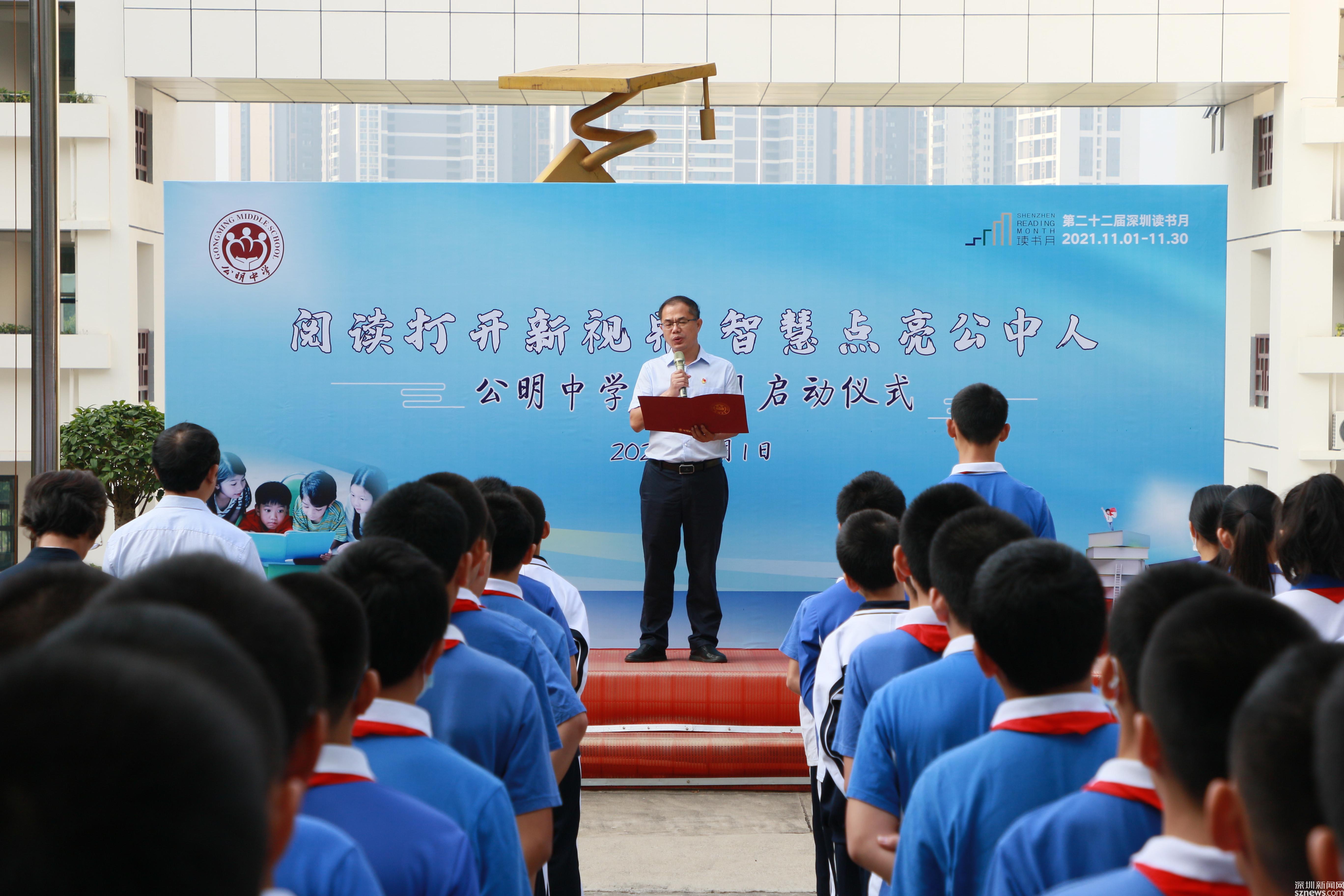“公明中學將用閱讀賦予校園知書達理的文化氣息,用知識開闊眼界,用經(jīng)典浸潤心靈,用書為伴博覽同行。”華建明校長指出,深圳正傾力打造具有世界影響力的閱讀文化品牌,公明中學將以深圳讀書月為依托,由黨員、行政帶頭學習,做讀書活動的組織者、參與者和引導者,做師生學習的表率,鼓勵師生愛讀書,讀好書,學會讀書,在閱讀中發(fā)揮“恒、勤、思、用”的精神,引導閱讀文化向縱深發(fā)展,在全校形成“專家指導、陣地支持、全員參與”的讀書格局,增厚公中文化底蘊。