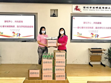 近日,光明區(qū)馬田小學六(3)班羅心如家長向學校捐贈口罩1000只、消毒液200瓶等愛心物資。