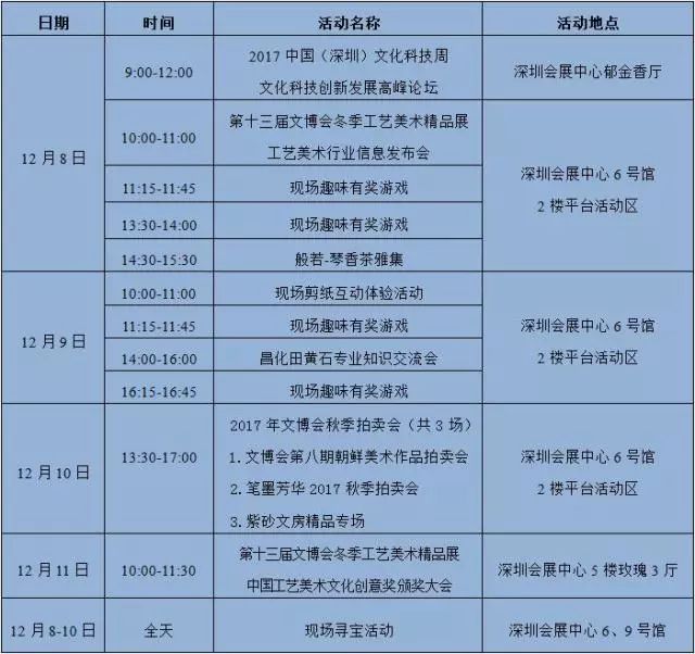 第十三屆文博會(huì)冬季工藝美術(shù)精品展暨2017中國(深圳)文化科技周活動(dòng)安排!