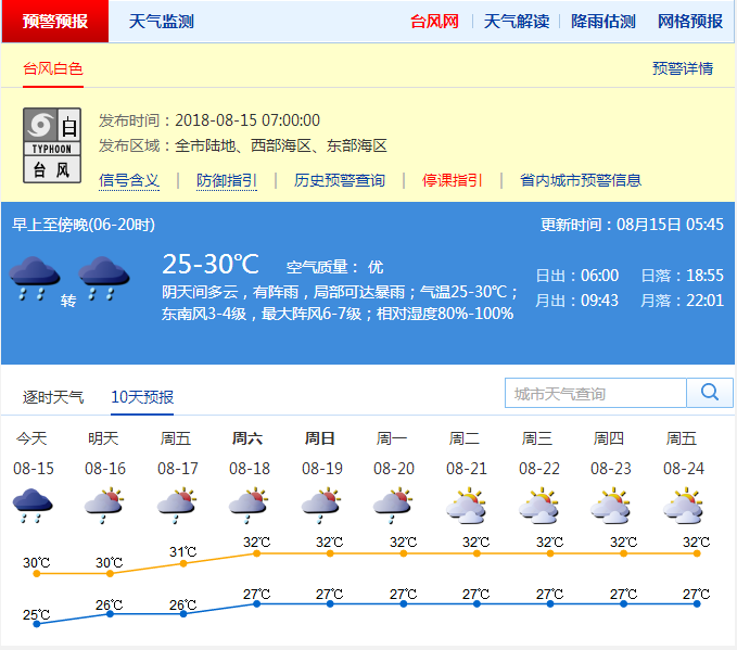 深圳市臺(tái)風(fēng)白色預(yù)警