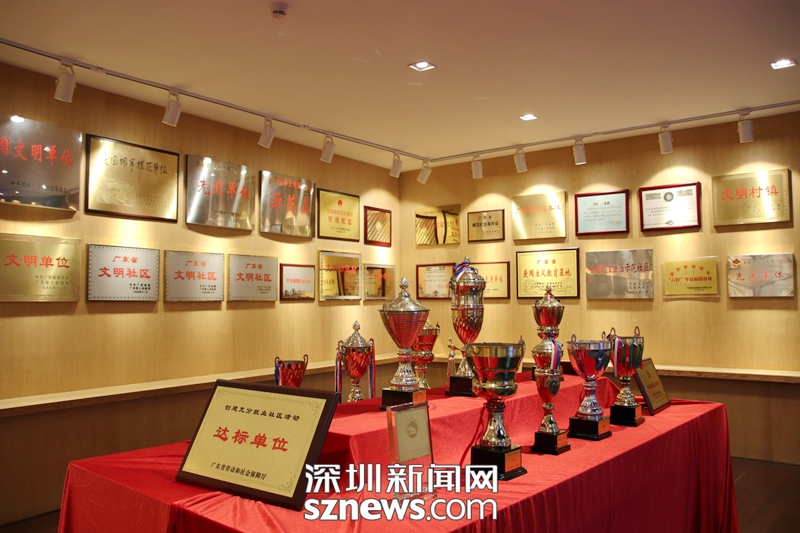 南嶺村村史展覽館里陳列歷年來獲得榮譽牌匾和獎杯