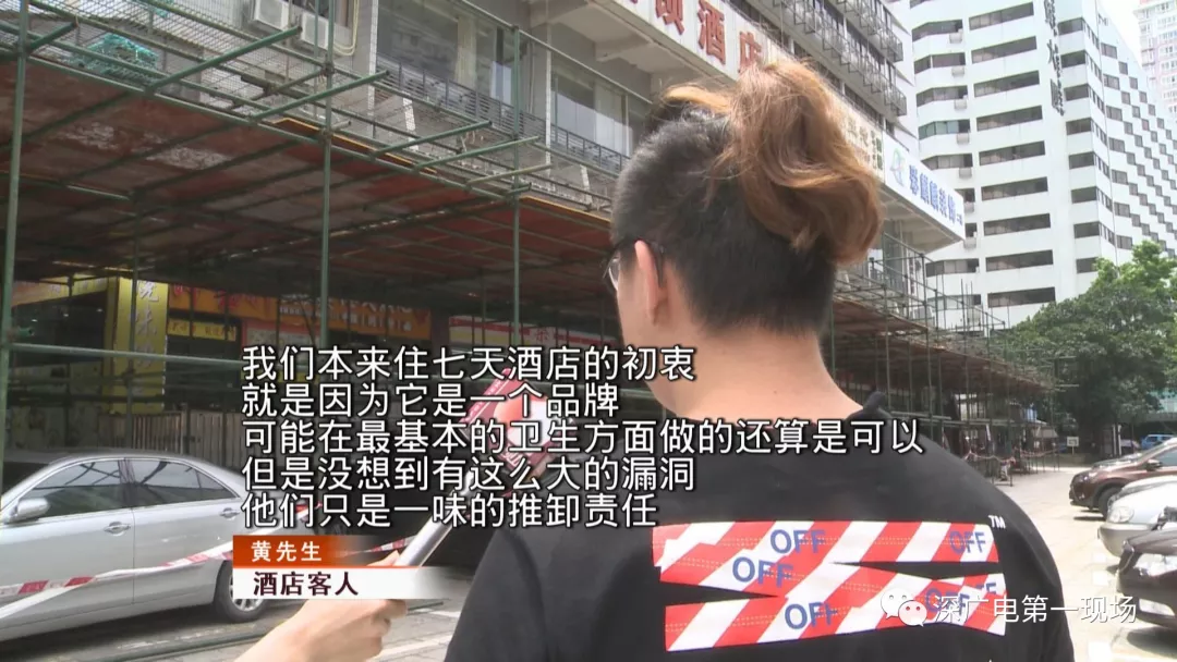 記者在酒店大堂的墻壁上,也看到了黃先生提供給記者的視頻中一模一樣的蟲子。洗衣機就隨意擺放在過道。黃先生還說,本以為7天酒店是一個連鎖大品牌,但這實際的環(huán)境和態(tài)度都讓他十分失望。