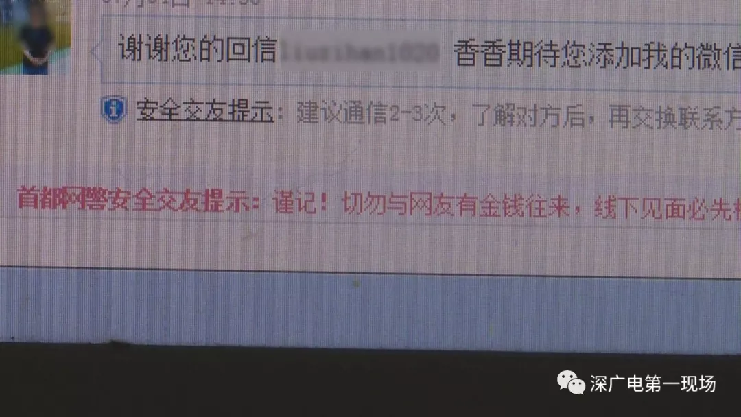 記者留意到,在婚戀網(wǎng)站聊天窗口上,男網(wǎng)友的信息下面就有一行安全提示信息,提醒警惕投資賭彩等詐騙行為。而在聊天界面下部還有首都網(wǎng)警的安全交友提示。