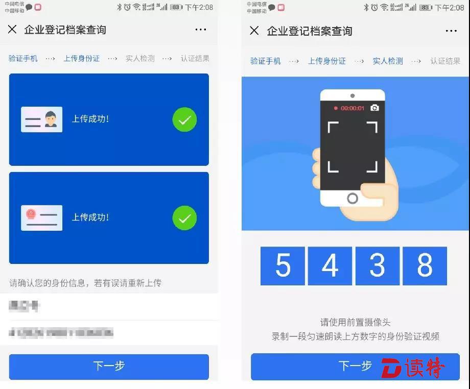 視頻驗證成功后,點擊“下一步”(若驗證不成功,則需退回重新操作);