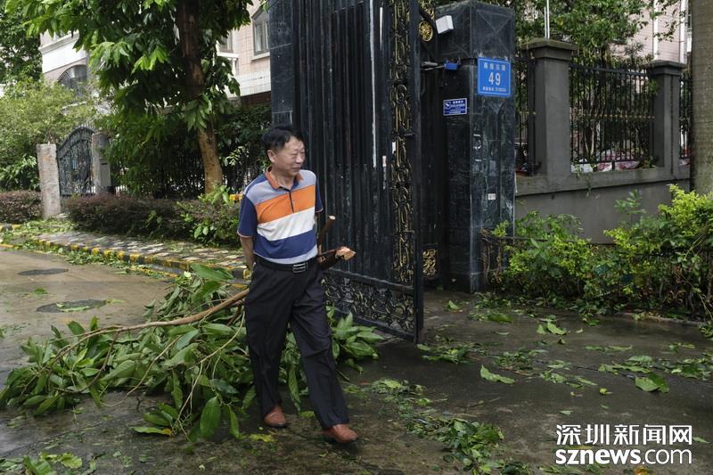 2018年9月17日10點12分,商報東二路富霖小區(qū)門口,一位市民從小區(qū)內拖出已掉落的樹枝。
