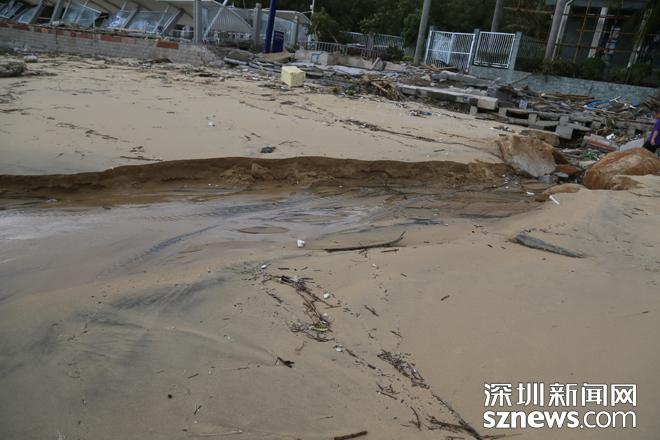 小梅沙旅游度假村景區(qū)內(nèi)沙灘海沙被卷走超7萬多立方,約2000米的堤岸及道路沖垮,公共、建筑設(shè)施及構(gòu)筑物全部受損,部分完全損毀,13處經(jīng)營管理場所損毀,綠化、樹木等嚴重破壞,直接經(jīng)濟損失預(yù)估超過5000萬元。