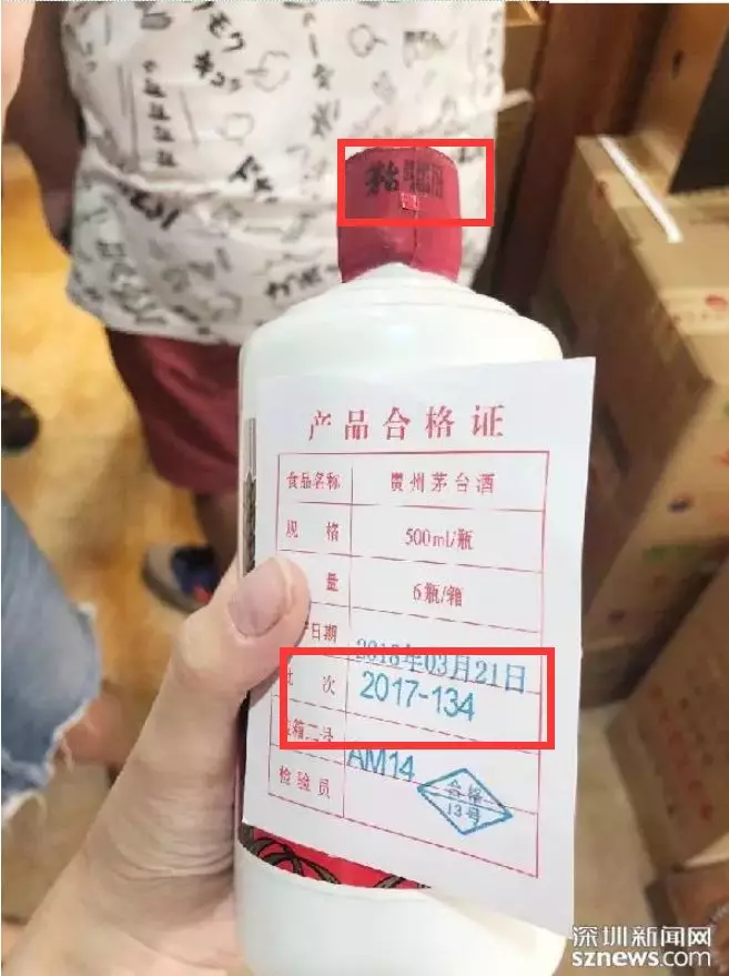 執(zhí)法人員支招,從以下方法入手:一般每箱茅臺都有對應的產(chǎn)品合格證,合格證上有相關(guān)批次數(shù)字,如果合格證上的批次數(shù)字與茅臺開口處所寫的批次一樣的話,為真茅臺概率很高。如圖,合格證和茅臺瓶口的數(shù)字皆為2017-134,為真酒,市民可放心飲用。