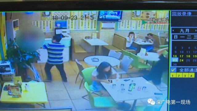 在9點50分左右,羅先生帶著女兒進入餐廳后,這名黑色短袖男子仍然沒有停止抽煙,在雙方發(fā)生口角后,這名黑色短袖男子更是直接動手,不但抄起身邊的物品砸向羅先生,還試圖沖上前毆打羅先生。