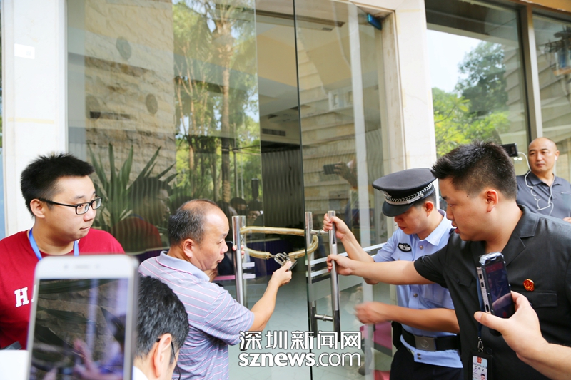 一樓大門(mén)已鎖,法院干警正嘗試打開(kāi)(福田法院提供)