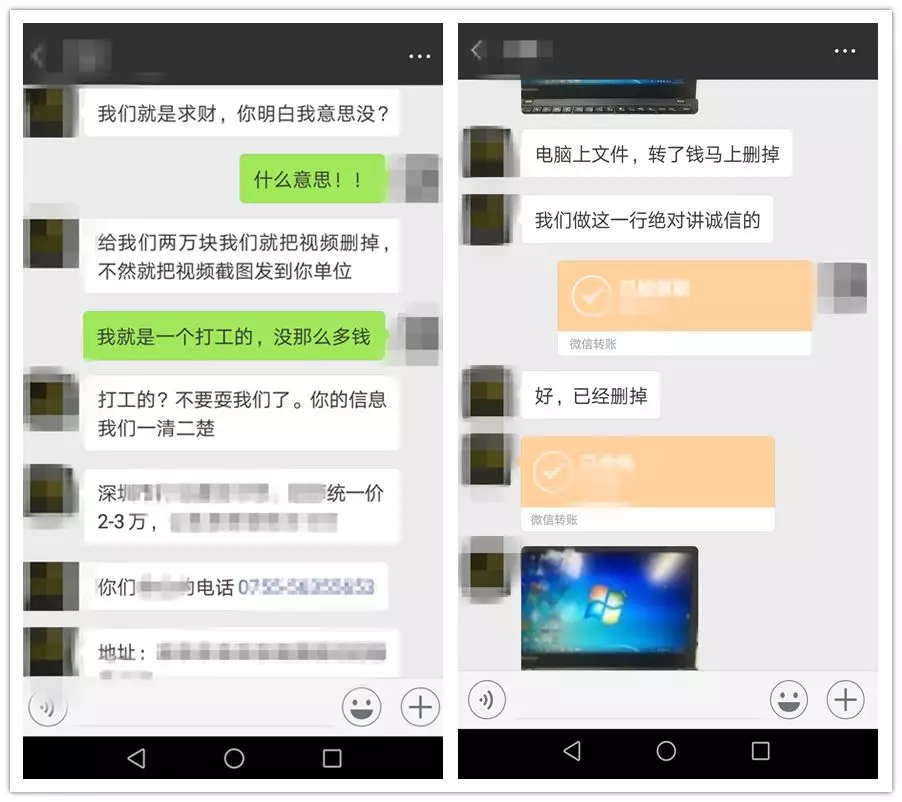 負(fù)責(zé)討錢的敲詐人員會(huì)以公布信息和裸露照片視頻為手段勒索錢財(cái)。