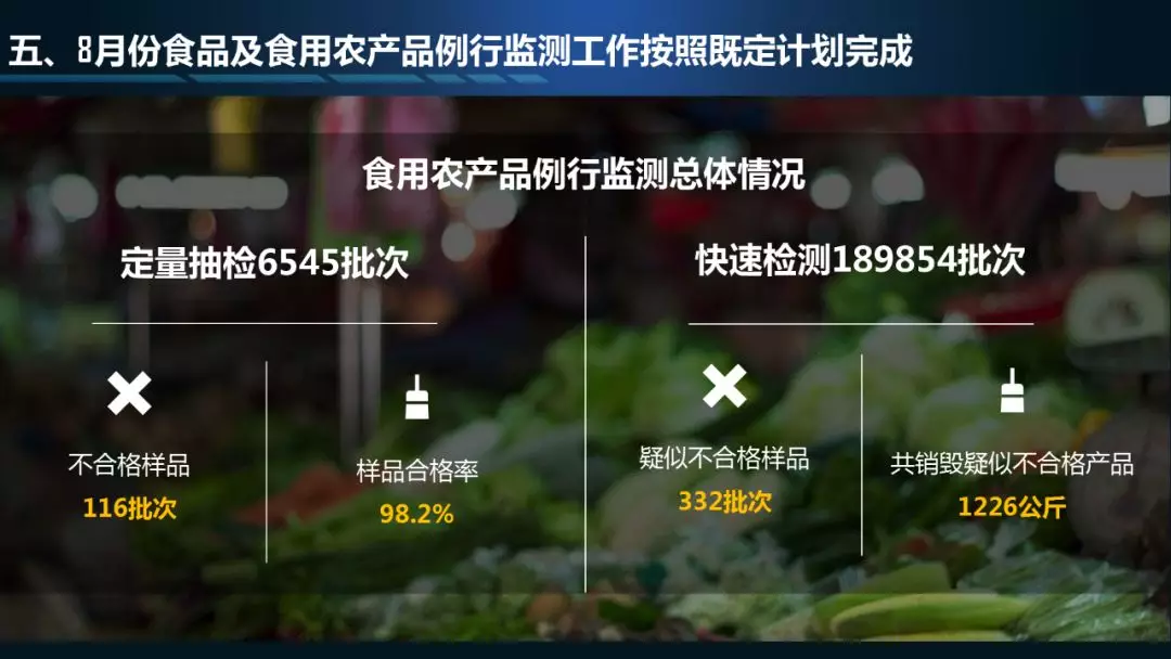 8月份食品及食用農(nóng)產(chǎn)品例行監(jiān)測(cè)工作按照既定計(jì)劃完成
