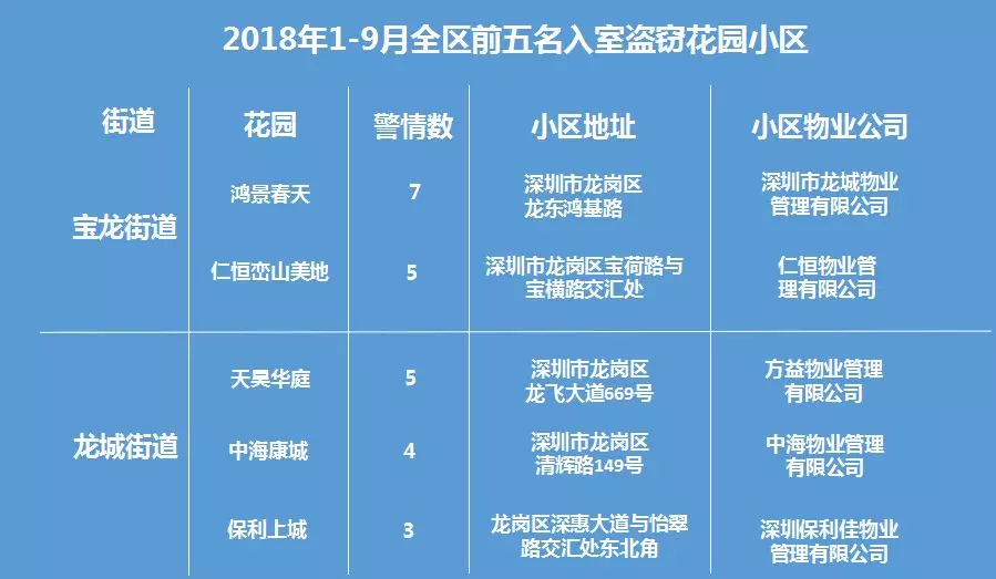 細看入室盜竊警情數(shù)排名前五的小區(qū)