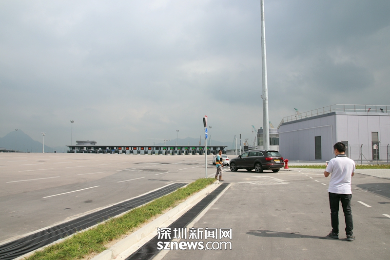 這里是港珠澳大橋香港口岸私家車出境處,私家車都從此上橋。10月24日上午的車不多,有車主下車拍照