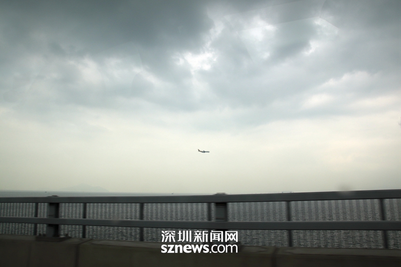 由于港珠澳大橋香港起點(diǎn)就在香港機(jī)場(chǎng)地塊,每隔幾分鐘就有飛機(jī)掠過天空
