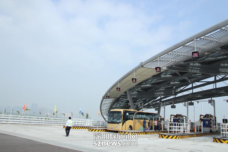 一輛穿梭巴士經(jīng)過港珠澳大橋珠海收費(fèi)站