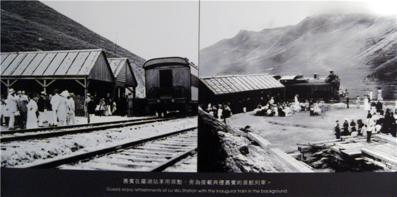 左圖為參加通車典禮的中英嘉賓在羅湖車站享用茶點(diǎn)。右圖為首航列車通過時(shí)的場景