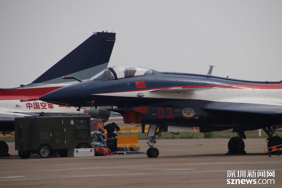 完成飛行表演,在停機(jī)坪上的殲-10。